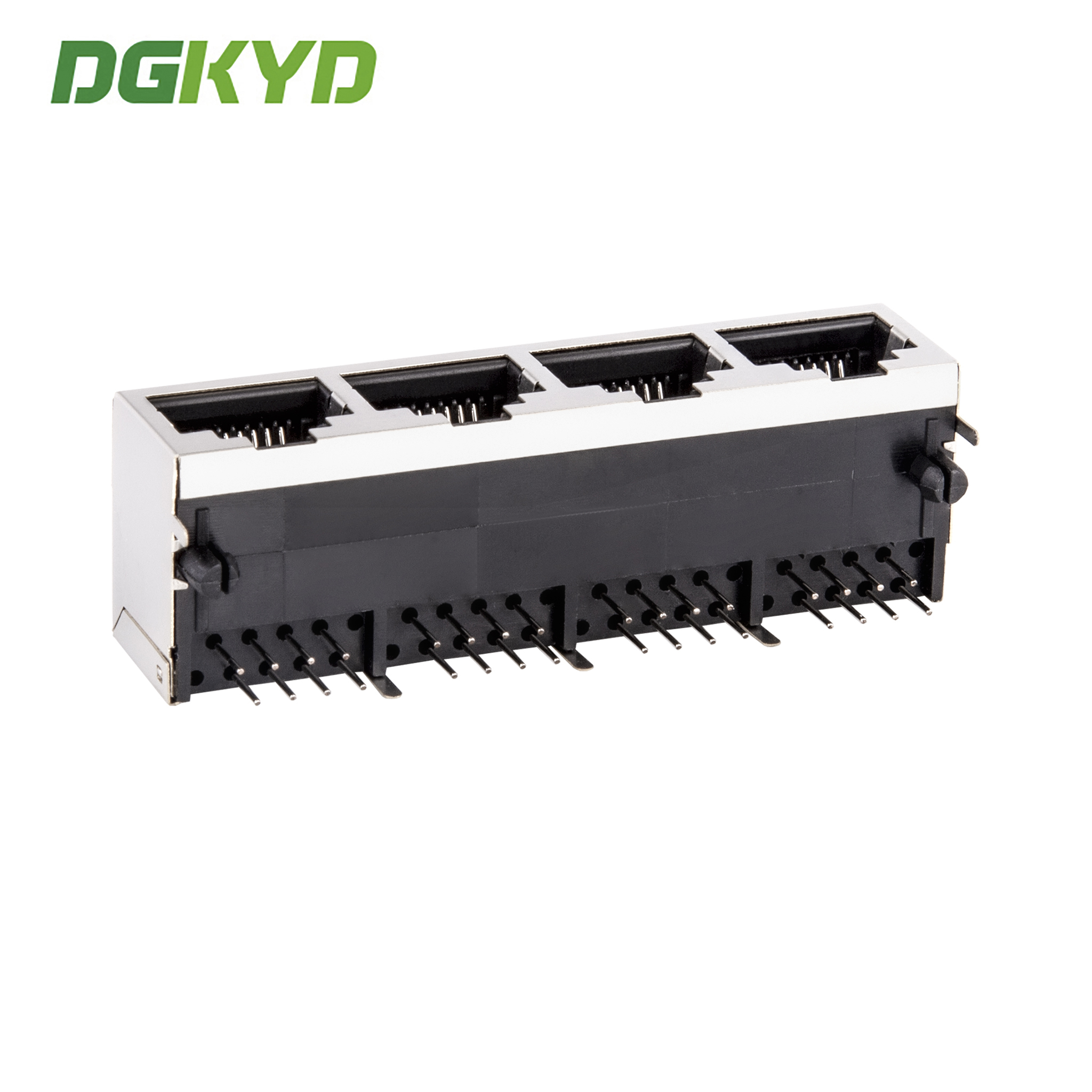 1x4 Right Angle Tab Down Shield RJ45 Connectors Quad Ports Ethernet Switch Sockets KRJ-5621S10P8C14QNL